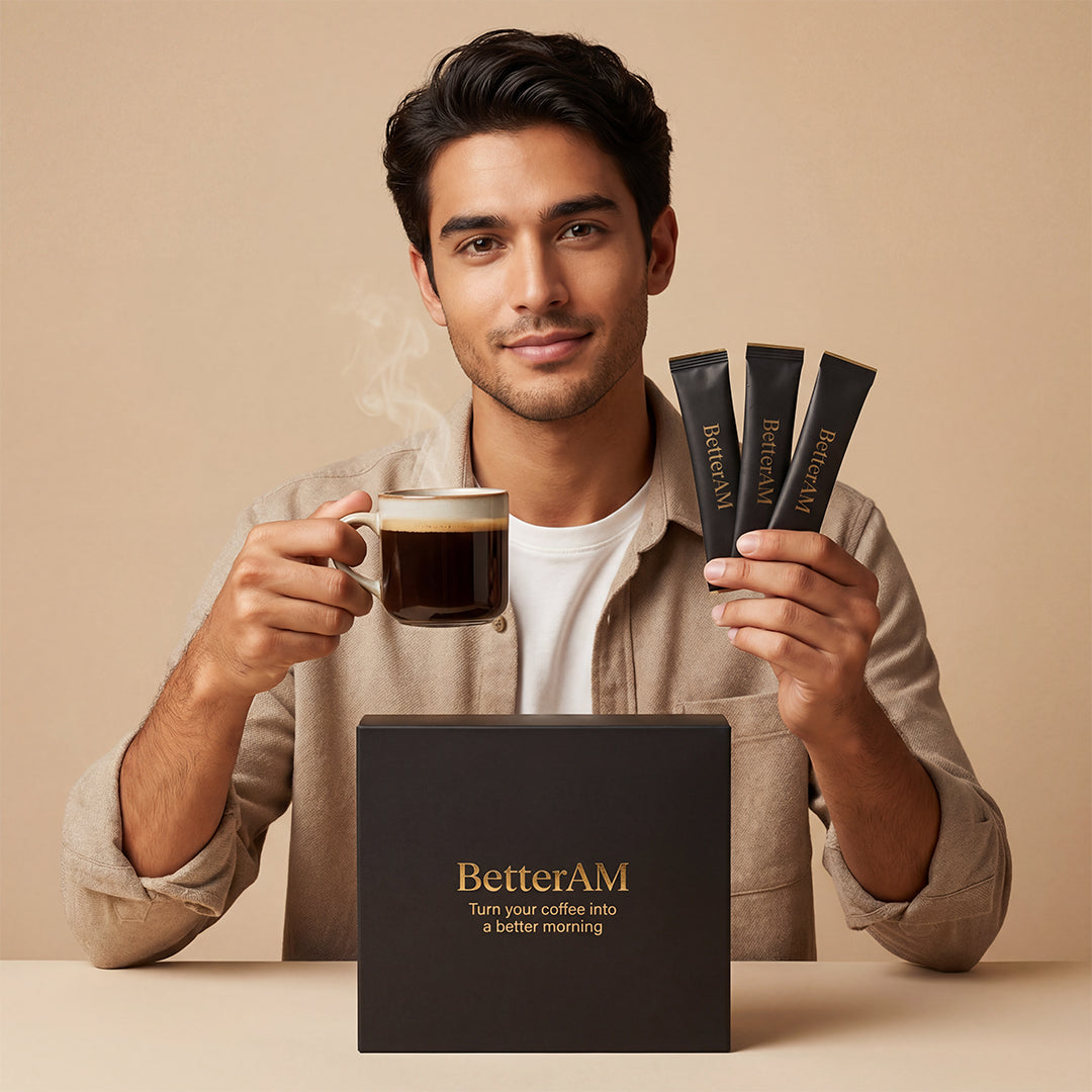 Just add BetterAM to your coffee for 7 days — Feel the difference or don’t pay